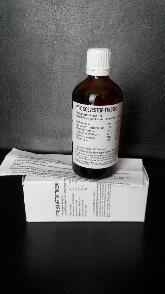 – 3 mal täglich 30 Tropfen Hypo Solvestor TT6-200© einnehmen.